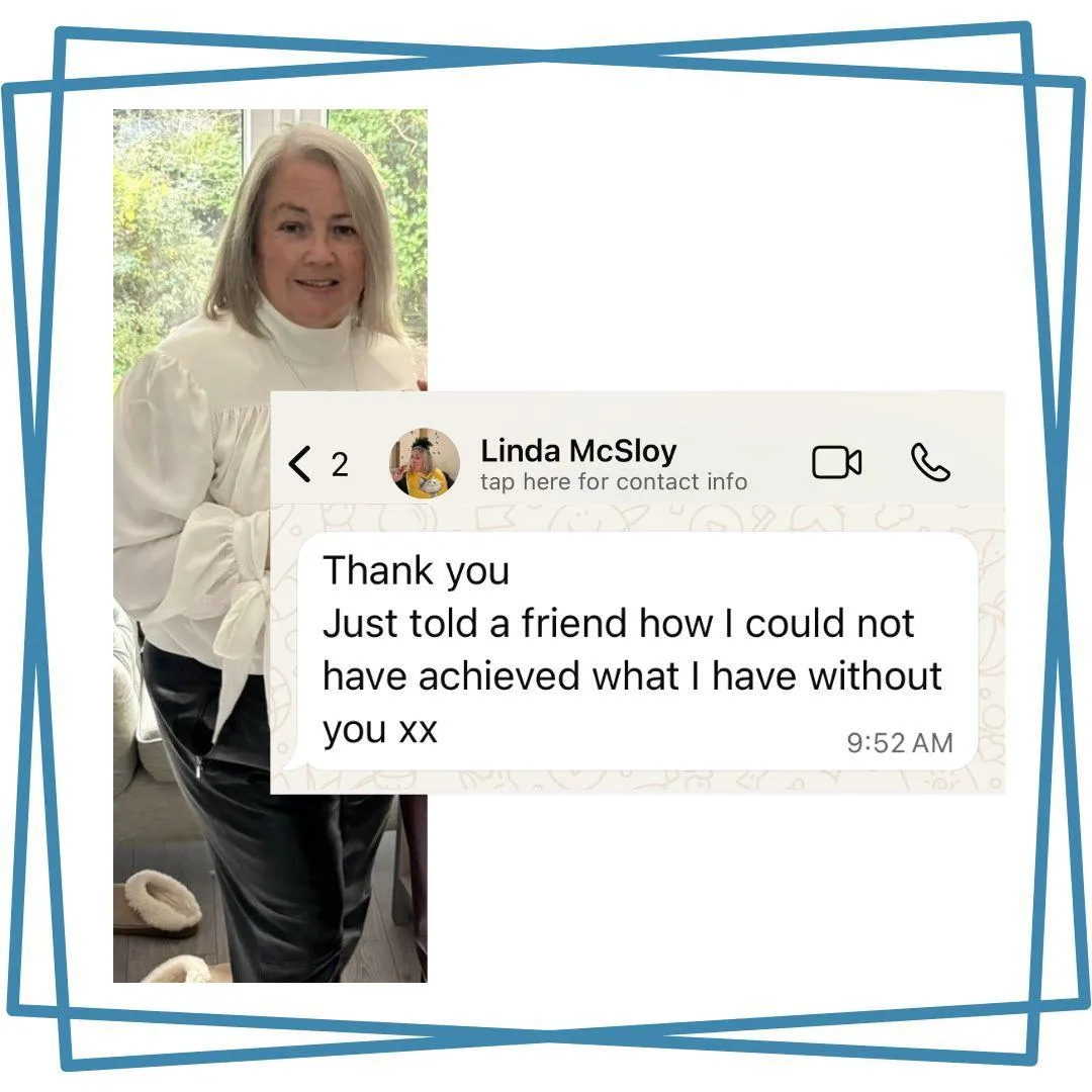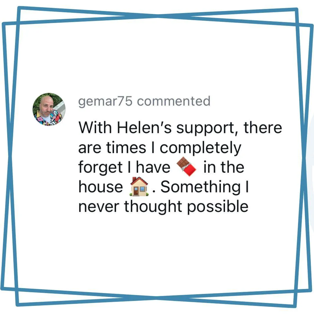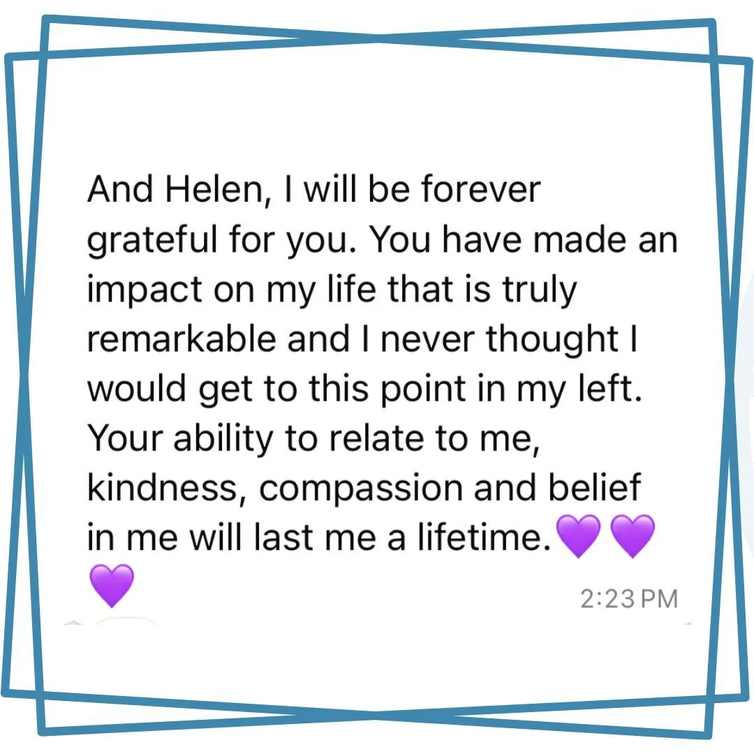 Her constant support made all the difference. Through texts, calls and voice notes, Helen was always there celebrating my wins, helping me through setbacks and reminding me that healing is possible. Her encouragement and wisdom gave me the strength to keep going even on the hardest days.