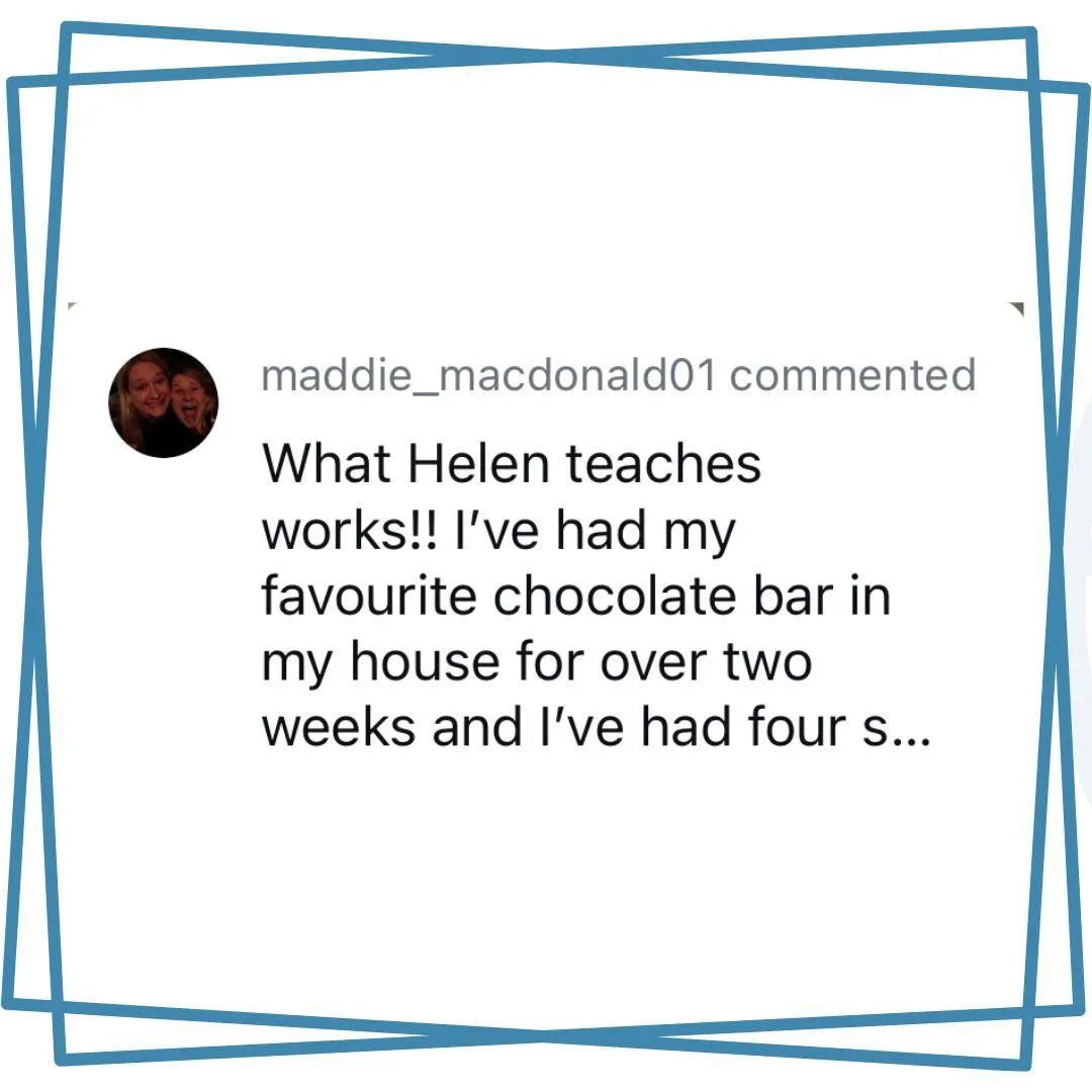 “I see food simply as food now, and don't use it as a toxic way to cope with my emotions anymore. I feel more free around food now and I'm so much more in tune with my hunger cues thanks to all the amazing skills I learnt from Helen.”